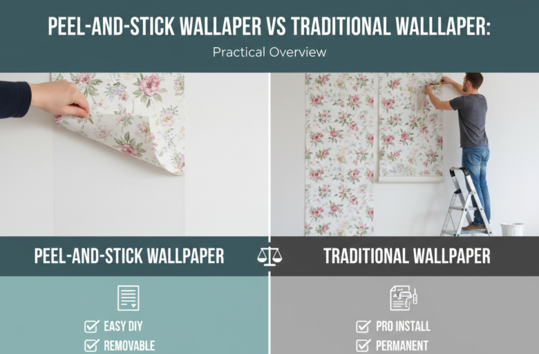 Peel-and-stick wallpaper and traditional paste-applied wallpaper both change a room’s look, but they do so in very different ways. Peel-and-stick offers fast installation and easy removal; traditional wallpaper requires more prep and skill but generally delivers longer life and greater textural depth. This piece is for homeowners, renters, and DIYers who need a clear comparison …